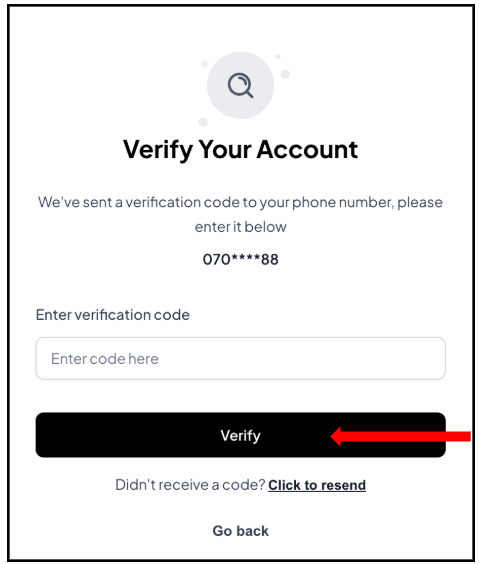 Account Verification: A verification code/One-Time Password (OTP) is sent to your phone number via SMS notification or Email. Enter the OTP and click on Verify.