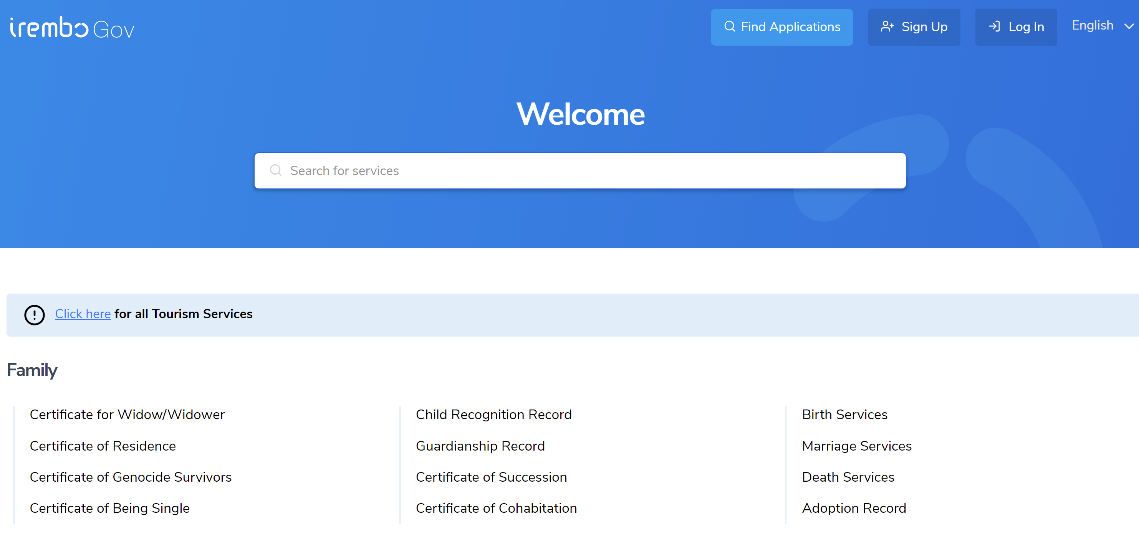 Visit Irembo platform: www.irembo.gov.rw and click on Sign up
