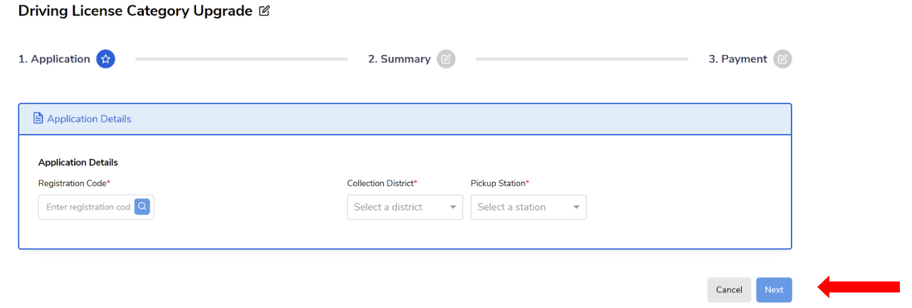 Select “Driving License Category Upgrade.”
