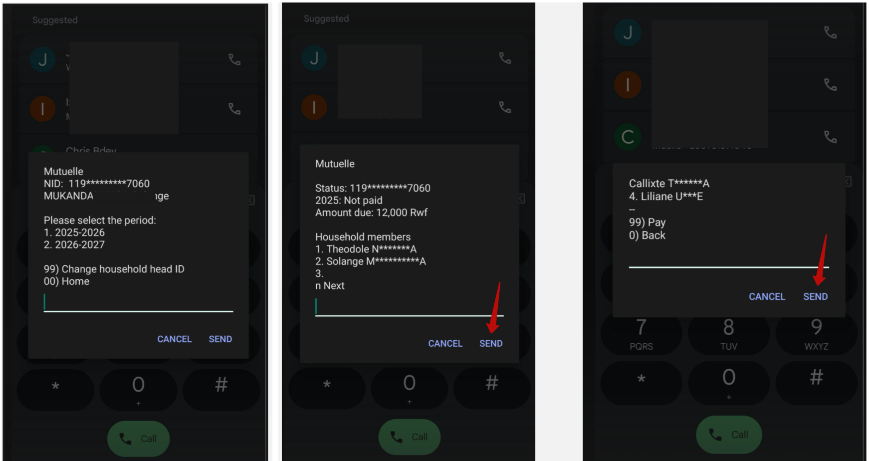 To check the household contributions and members, dial *909 and follow the instructions.