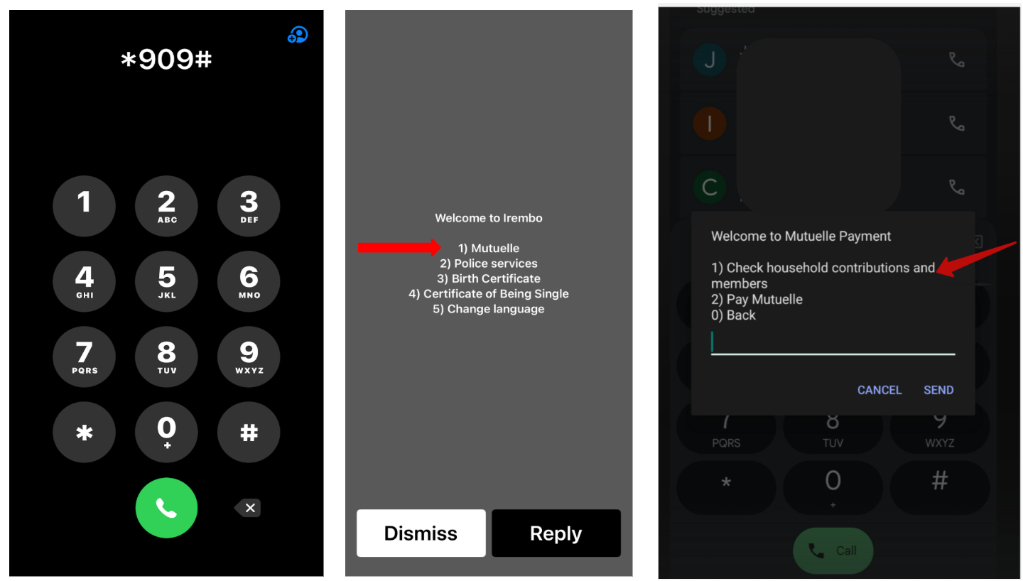 Step 1: Dial *909#, select "mutuelle," then check Household Contribution & Members