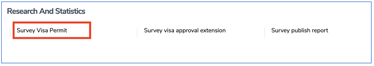 Step 1: Visit the IremboGov platform at www.Irembo.gov.rw, Under the “Research and Statistics” category, select “Survey Visa Permit”.