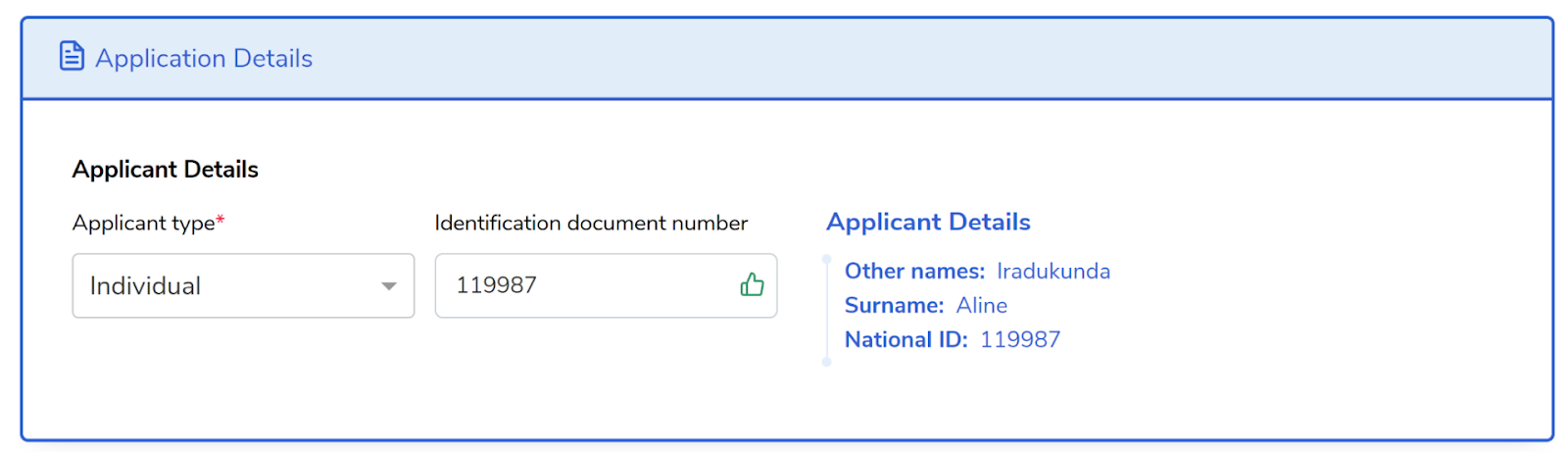 If applying as an individual, Enter your national ID number and review your details for accuracy.
