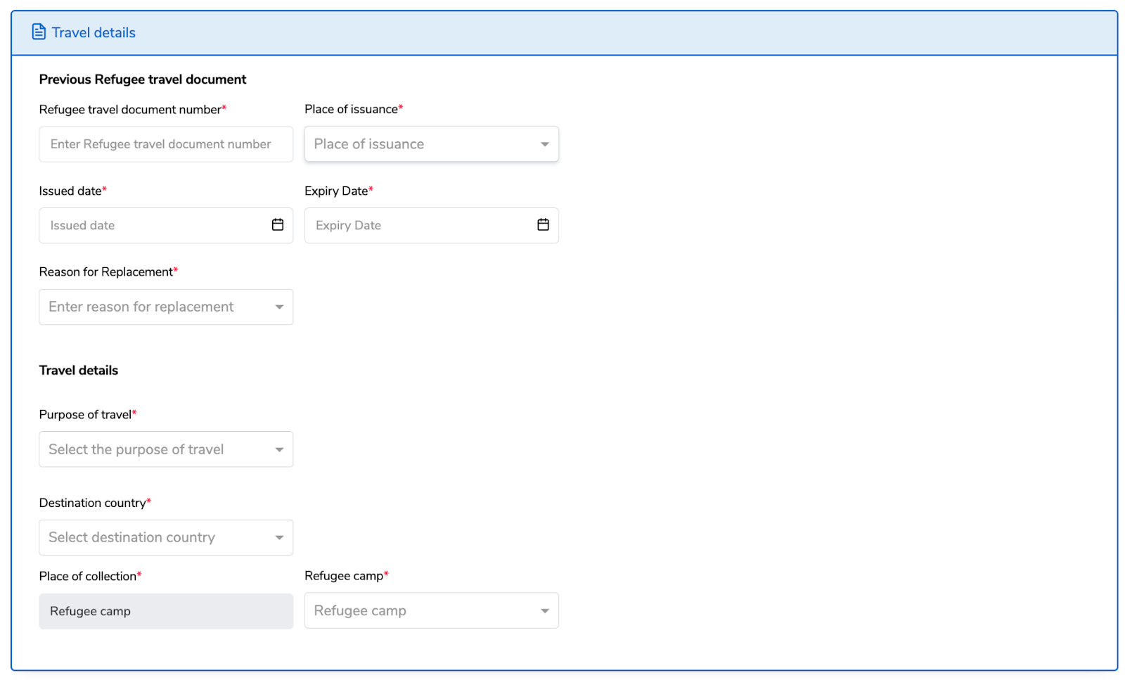 Select “Replacement of Refugee Travel Document” and click on Apply.