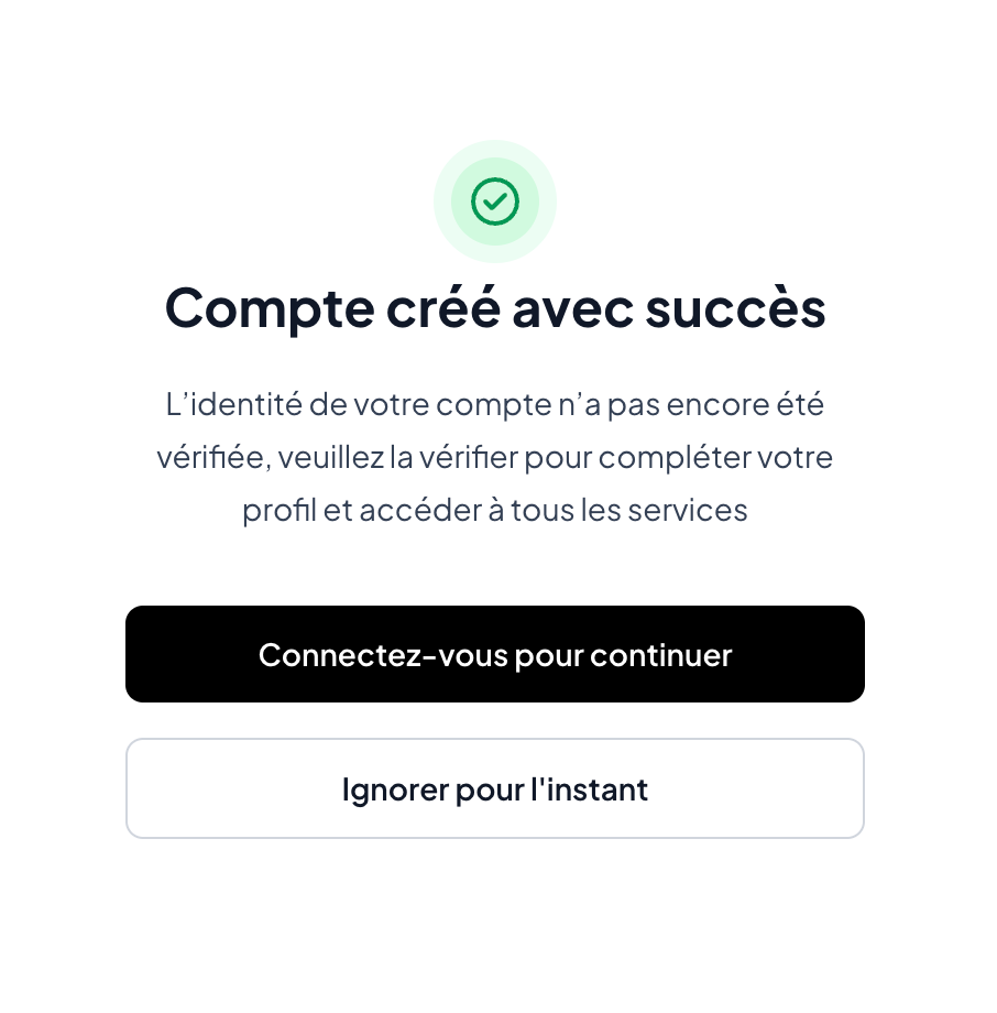 Maintenant, vous êtes prêt ! Vous recevrez une notification d'Irembo confirmant que votre compte a été créé.