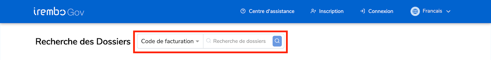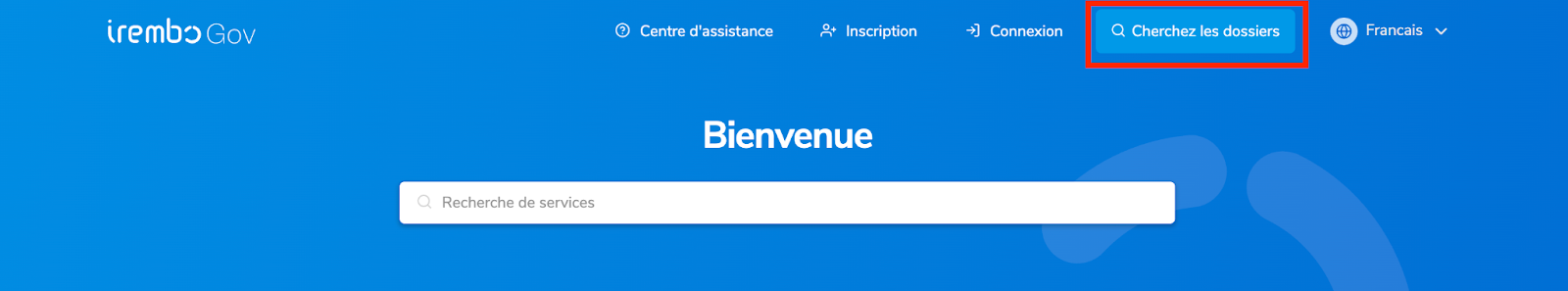 Étape 1 : Rendez-vous sur www.irembo.gov.rw et cliquez sur « Cherchez les dossiers».