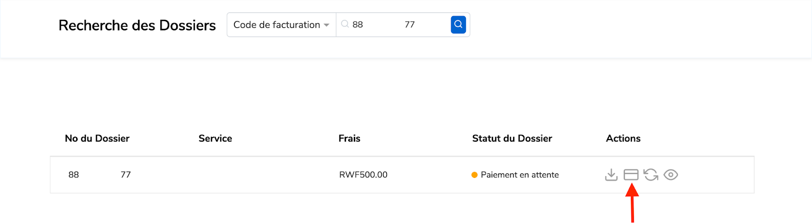 Étape 2 : Saisissez le code de facturation reçu dans la barre de recherche et cliquez sur le bouton « Rechercher ».