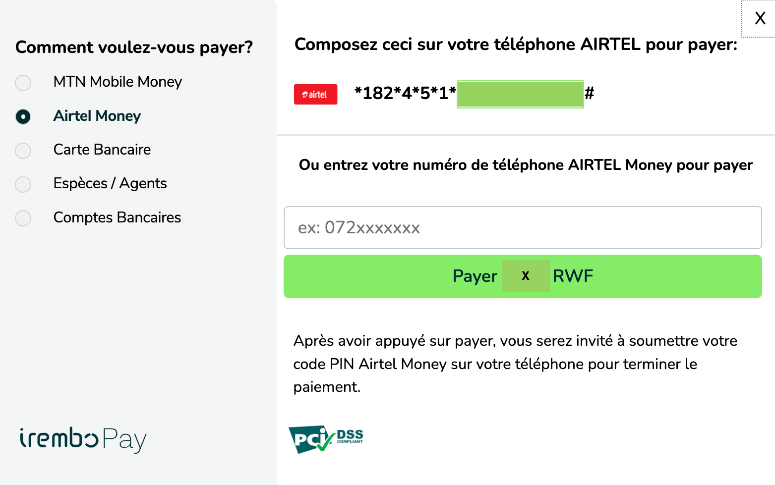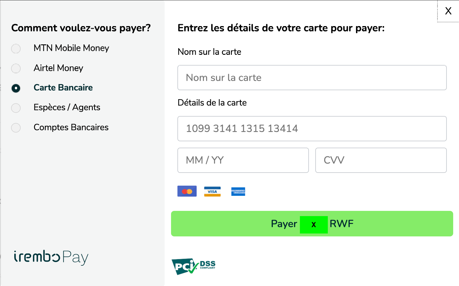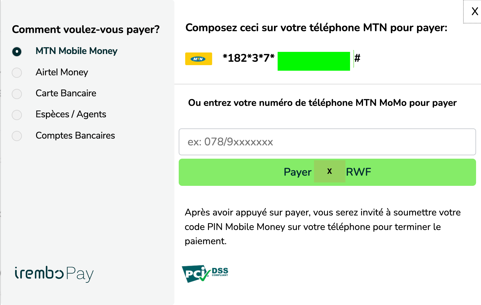 IremboGov prend en charge les méthodes de paiement en ligne et hors ligne. Choisissez celle qui vous convient le mieux :