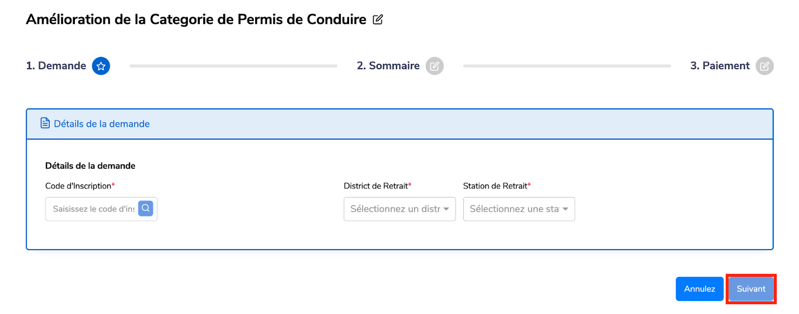 Sélectionnez “Amélioration de la Catégorie du Permis de Conduire”.