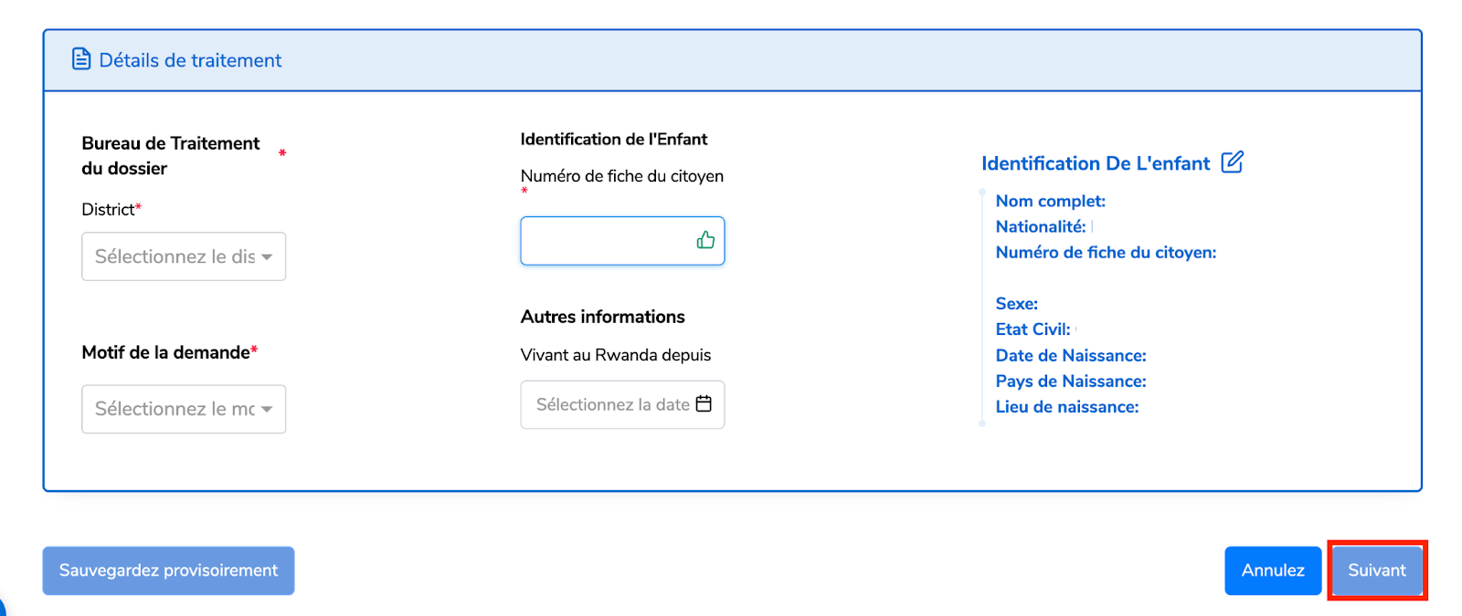 Pour un enfant : Les citoyens rwandais de moins de 16 ans doivent avoir une identité d’enfant / numéro de fiche de citoyen.