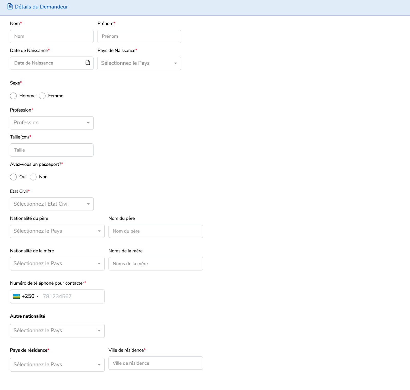 Remplissez les détails du demandeur.