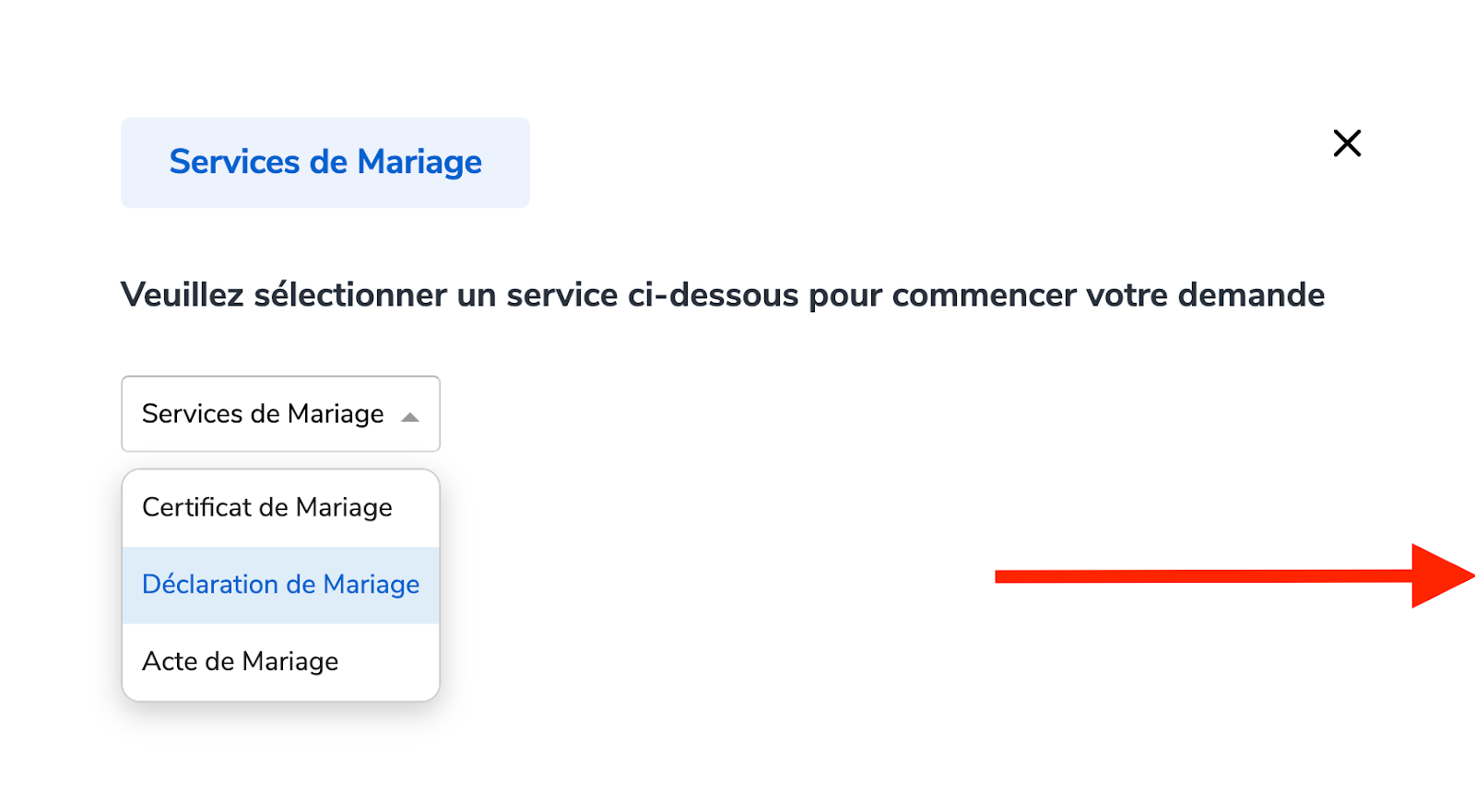 1. Choisissez « Déclaration de mariage » et cliquez sur « Postulez ».