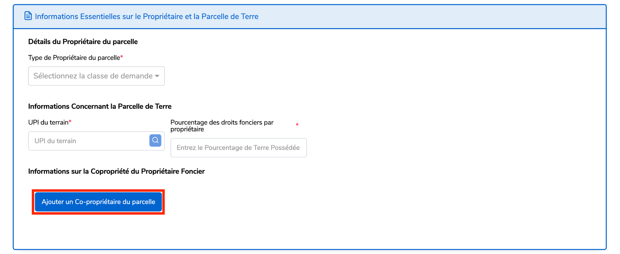 Note : Cliquez sur "Ajouter un copropriétaire de la parcelle" pour saisir les informations d’une autre personne.