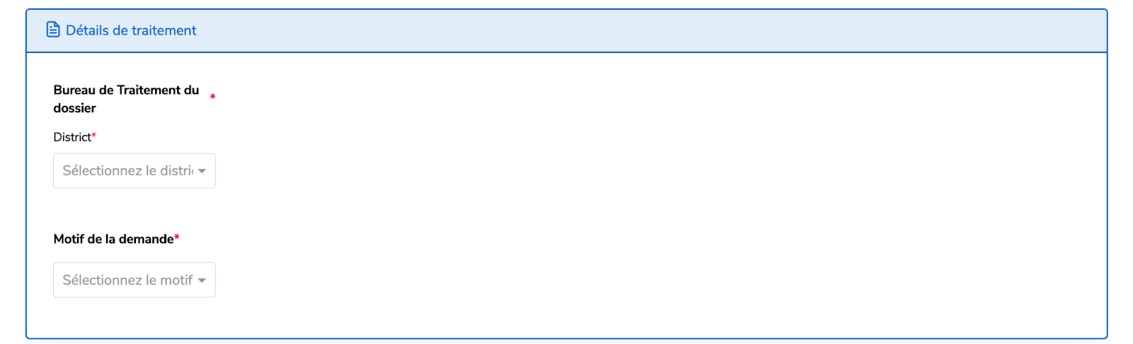 Renseignez le type et le numéro du document d’identification ; le formulaire de demande sera automatiquement pré-rempli avec les informations précédentes, puis cliquez sur Suivant.