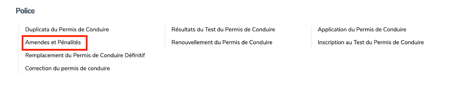 1. Visitez www.irembo.gov.rw et, sous Police, cliquez sur “ Amendes et Pénalités .