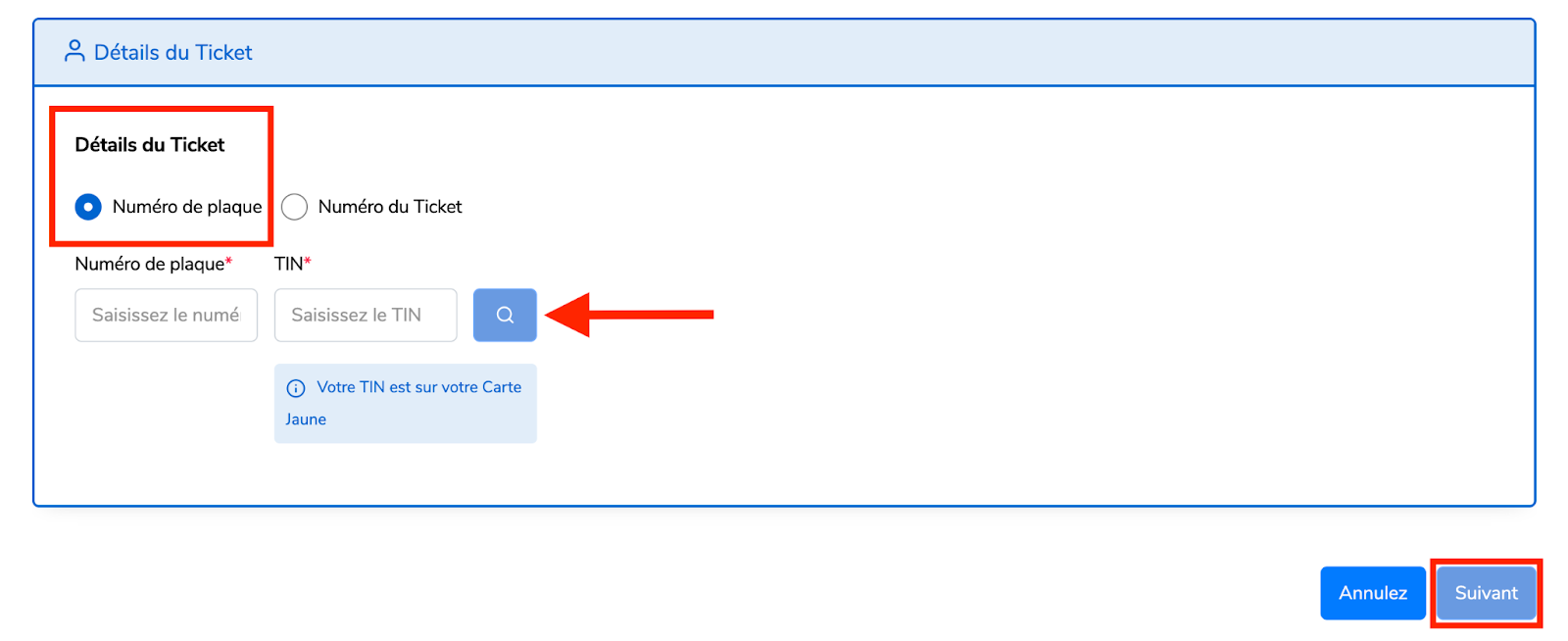 • En utilisant le numéro de plaque avec TIN :