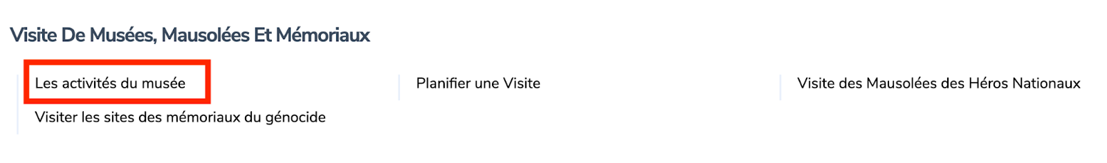Rendez -vous sur www.irembo.gov.rw , sous Visite de musées, mausolées et mémoriaux, choisissez “Les activités du musée”.