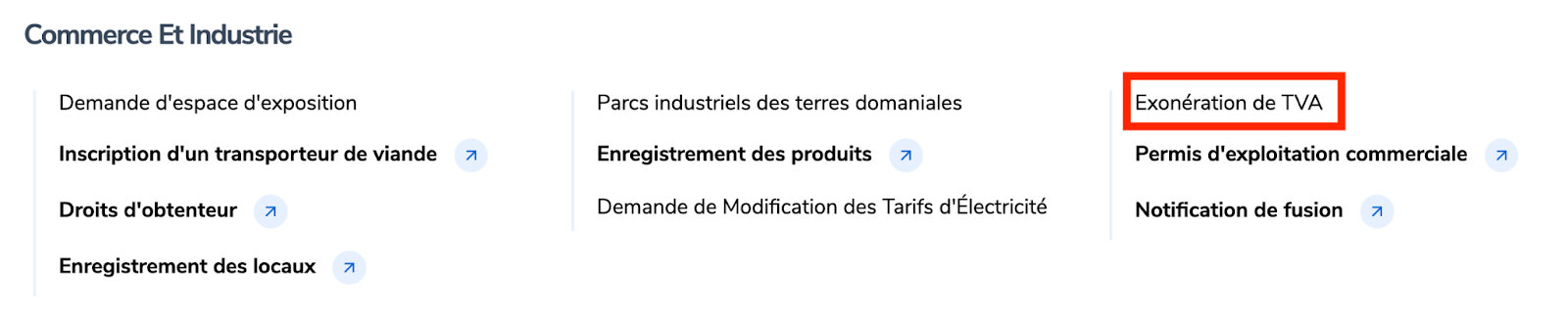 Rendez-vous sur www.irembo.gov.rw ,dans la catégorie “Commerce et Industrie”, choisissez “Exonération de TVA”.