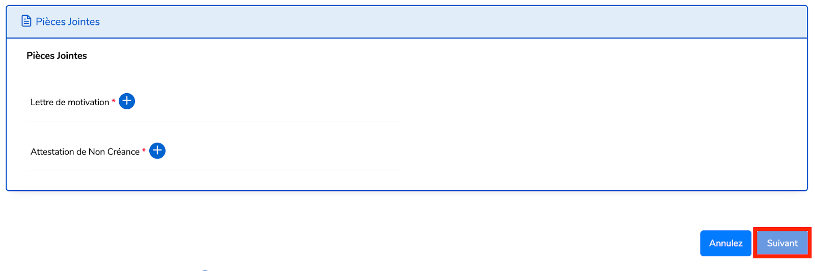 Étape 5 : Joignez les documents requis et cliquez sur Suivant.