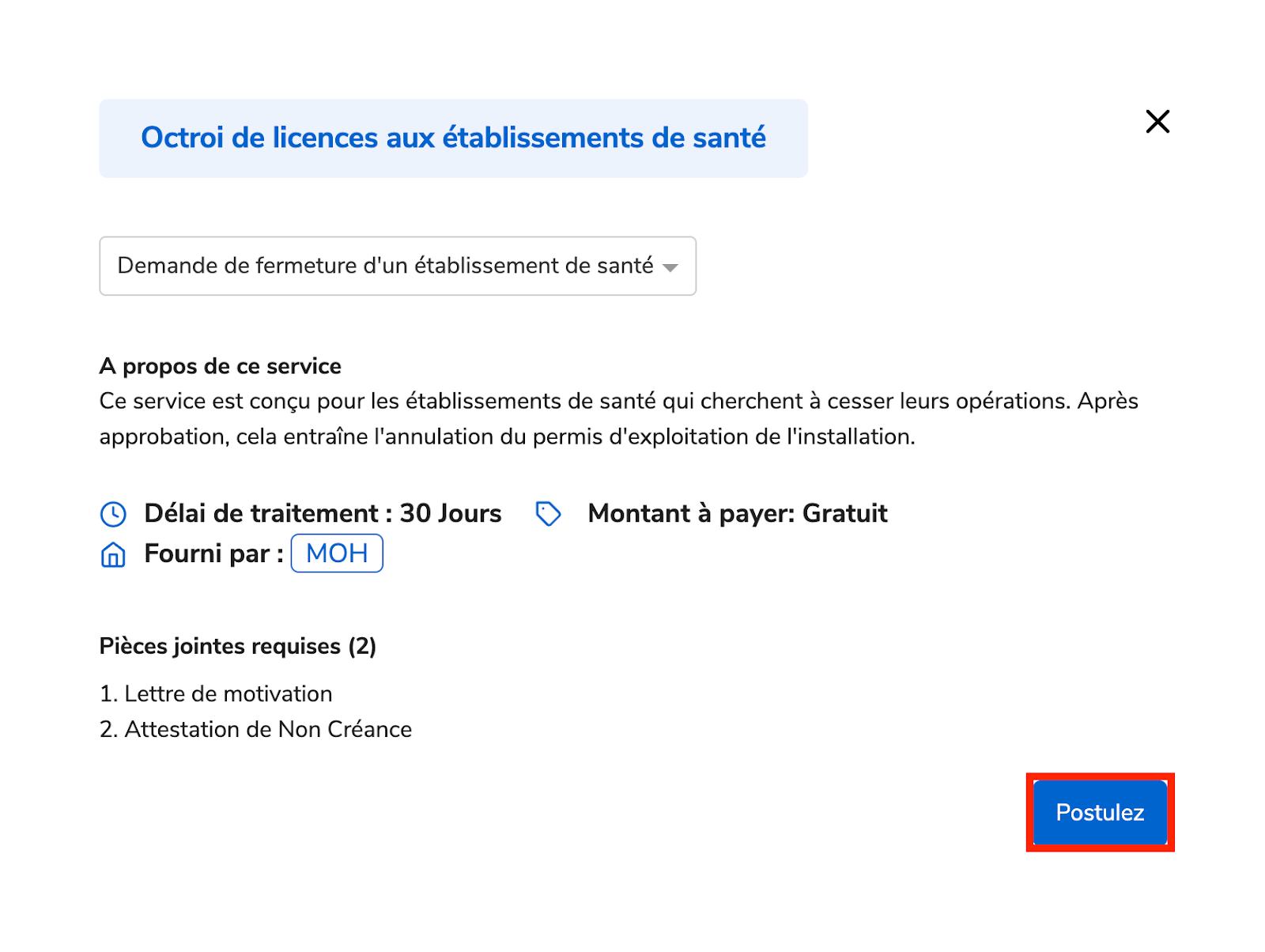 Suivez les étapes ci-dessous pour faire une demande de fermeture d’un établissement de santé