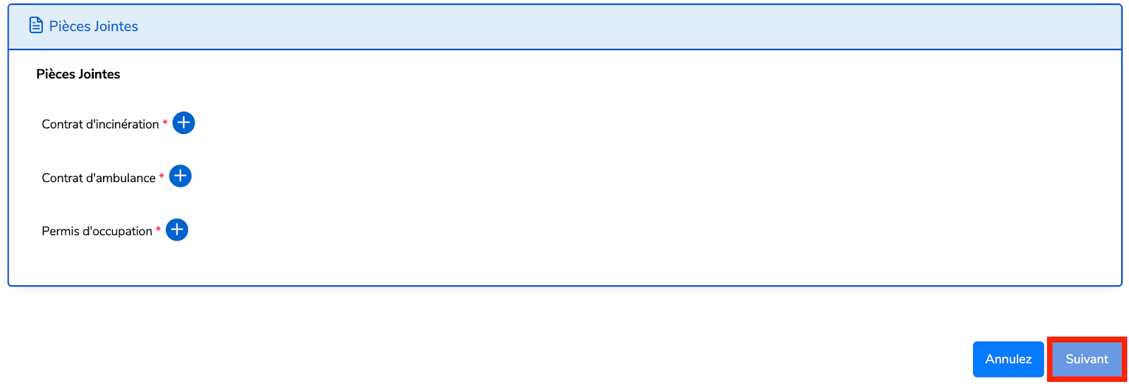 Étape 5 : Joignez les pièces jointes requises dans le format approprié, puis cliquez sur Suivant.