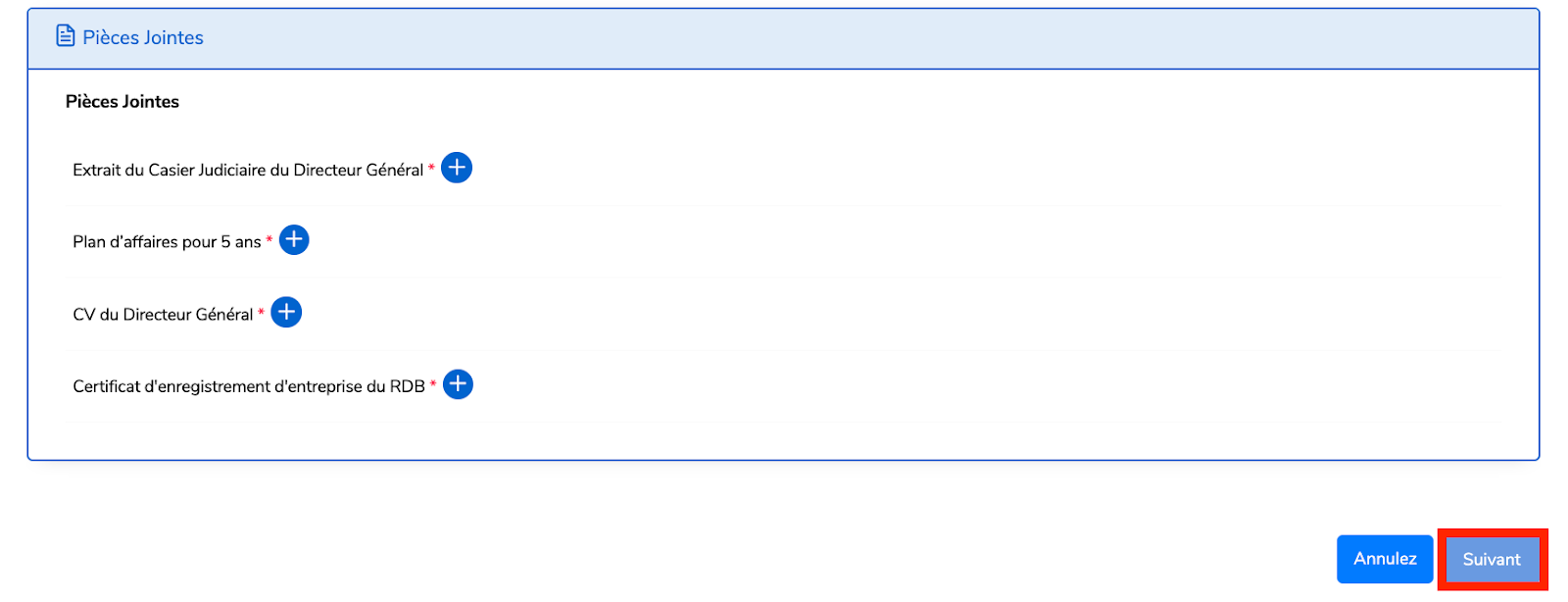 Étape 4 : Joignez les pièces jointes requises dans le format approprié, puis cliquez sur Suivant.