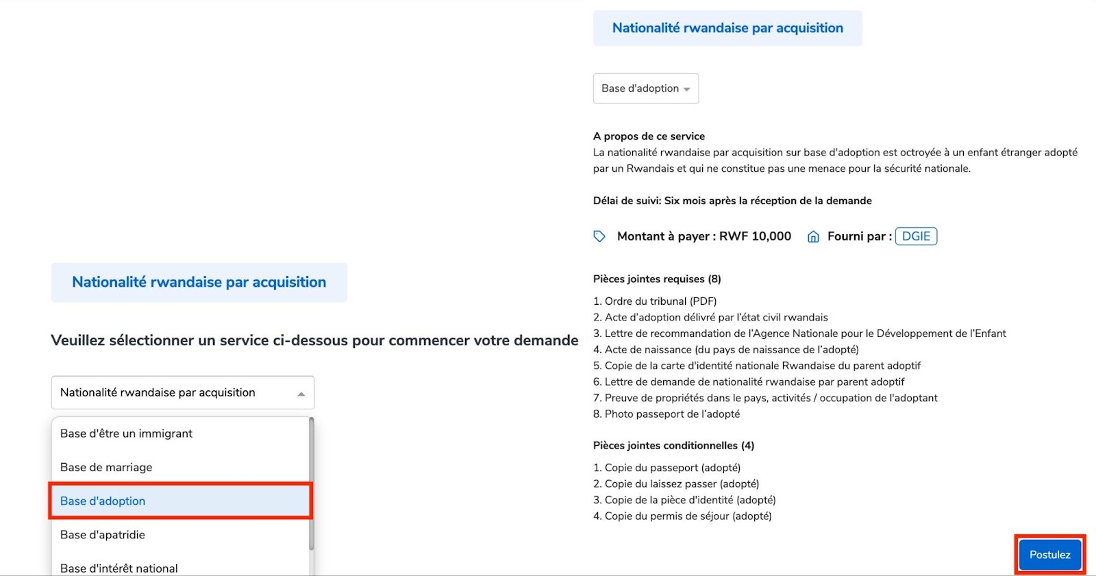 Suivez ces étapes simples pour faire votre demande de “Nationalité rwandaise par acquisition – Base d’adoption”