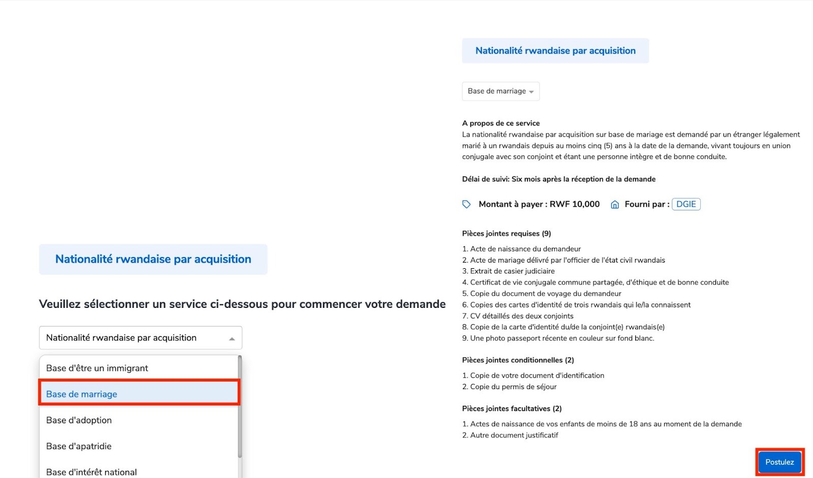 Suivez ces étapes simples pour faire votre demande de “Nationalité rwandaise par acquisition – Base de mariage”
