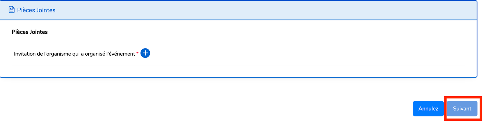 Joignez les pièces jointes requises,puis cliquez sur “Suivant”.