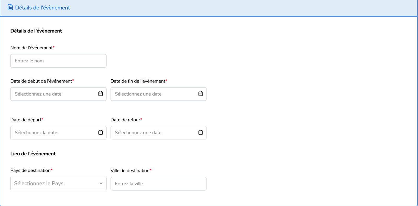 Remplissez les détails de l'événement.