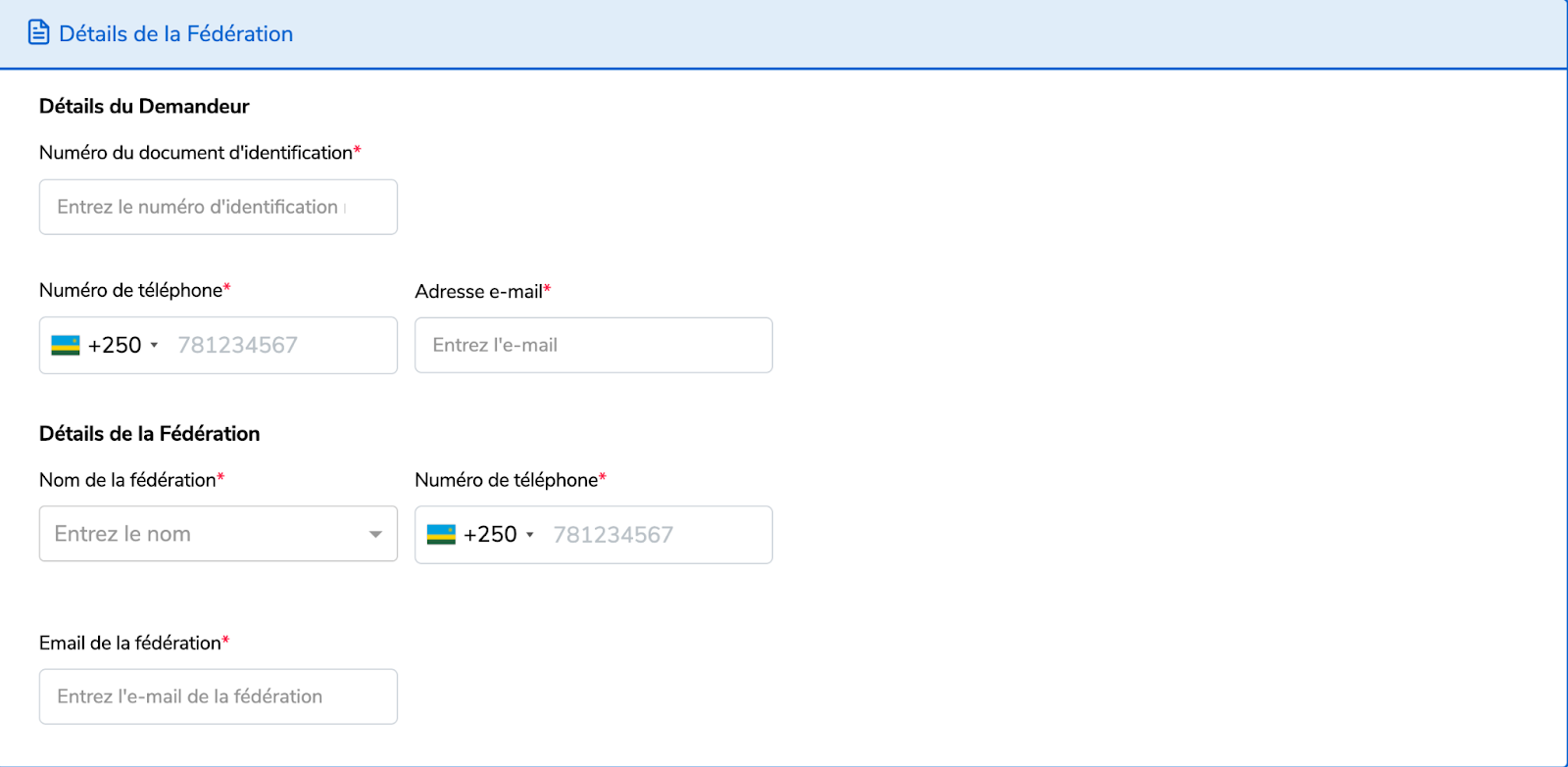 Remplissez les détails de la fédération en incluant les détails du demandeur.