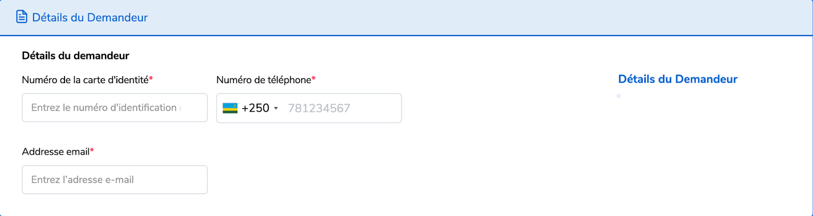 Remplissez les détails du demandeur.