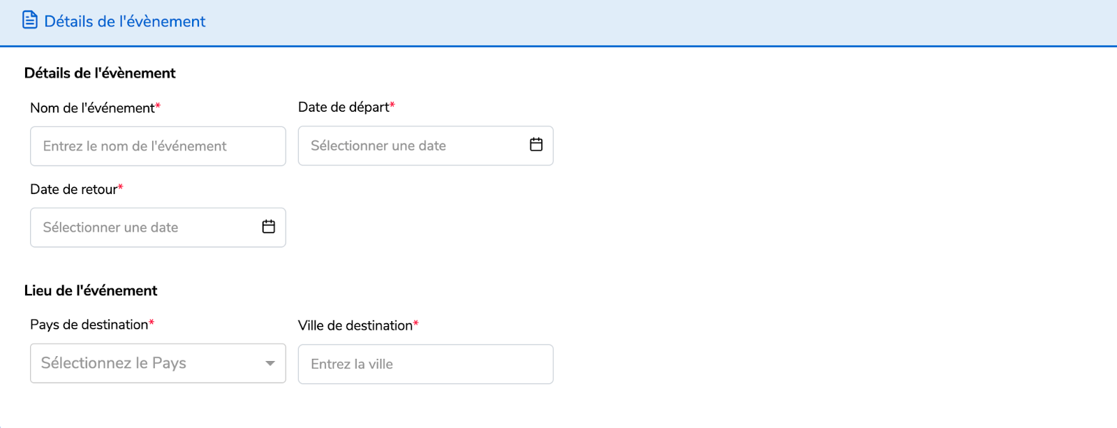 Remplissez les détails de l'événement.