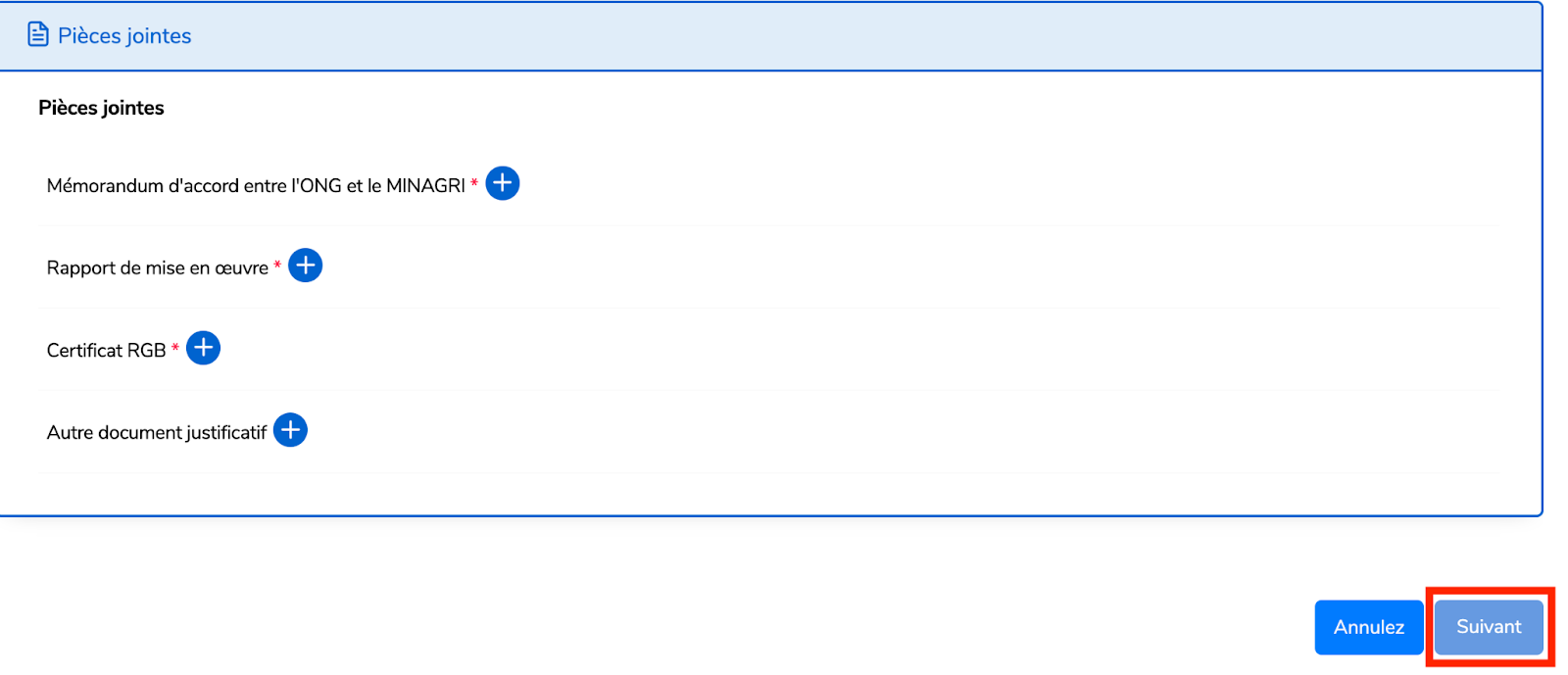 Joignez les pièces jointes requises dans la bonne taille et format,puis cliquez sur “Suivant”.