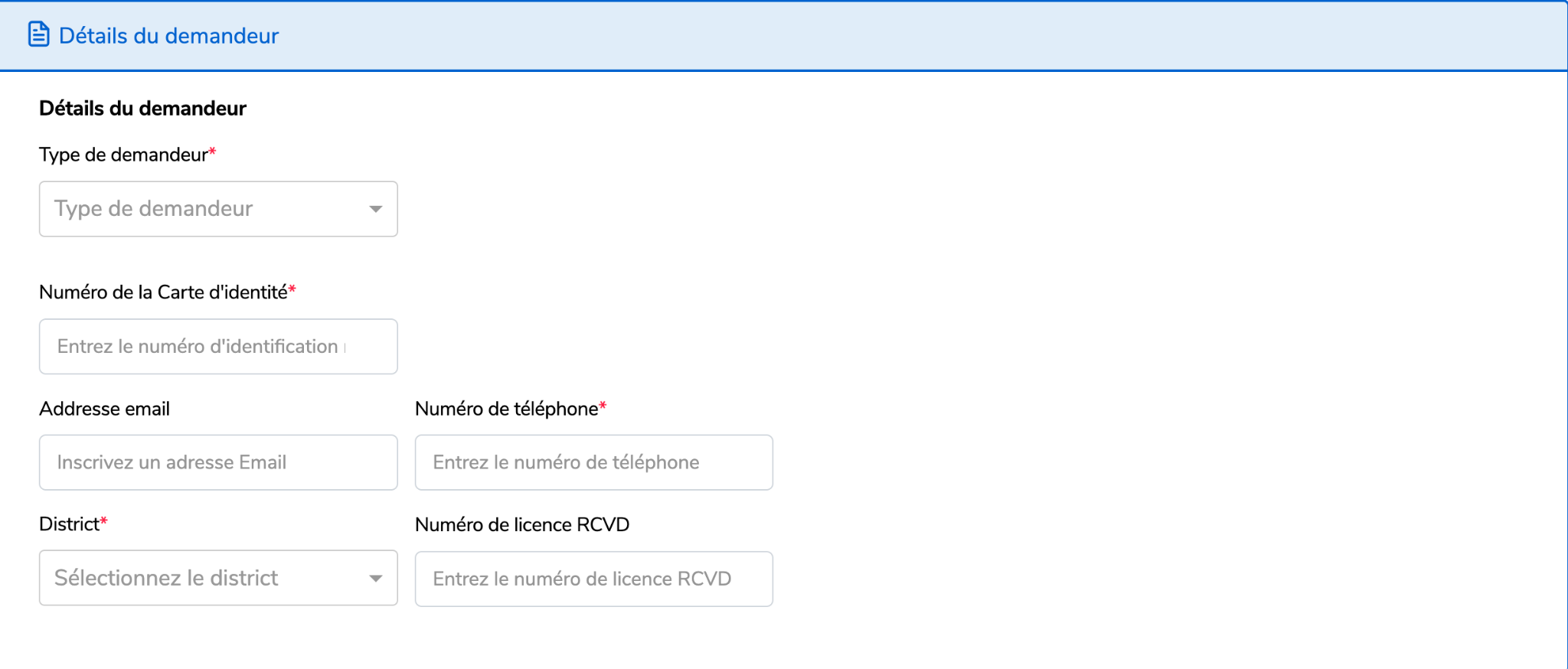 Remplissez les détails du demandeur.