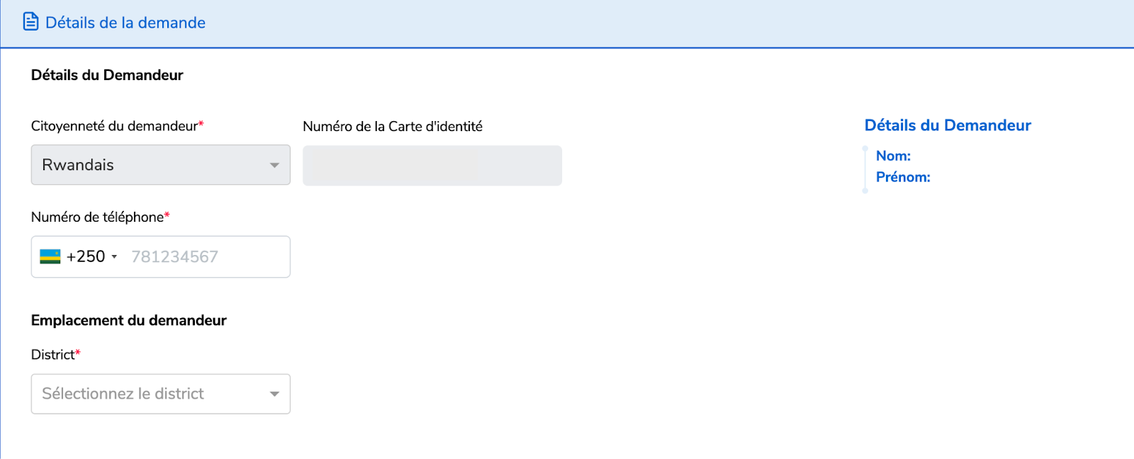 Les demandeurs doivent avoir un type de documentation(numéro de carte d’identité nationale pour les Rwandais ou un passeport pour les étrangers).