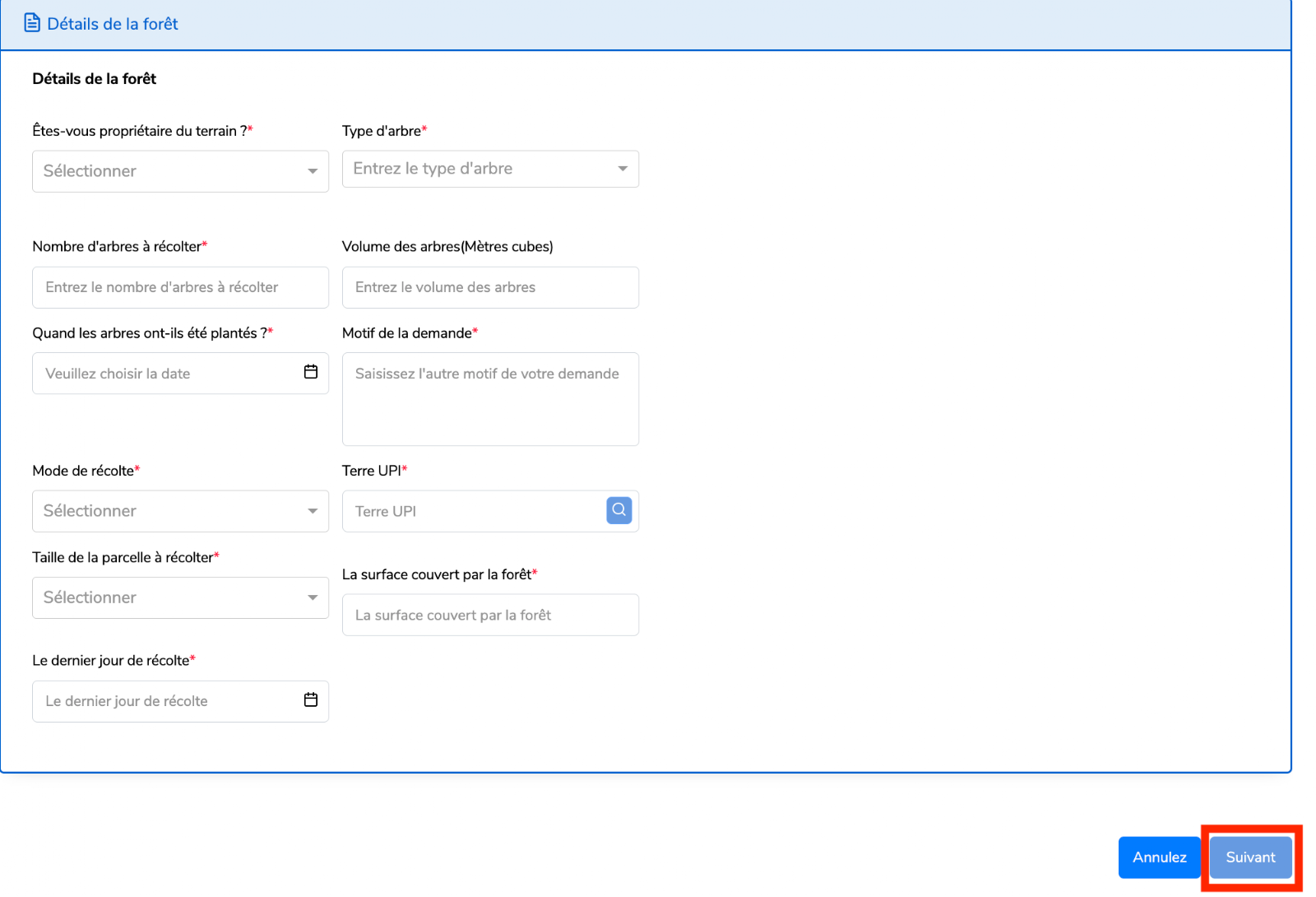 Remplissez les détails de la forêt en entier,puis cliquez sur “Suivant”.