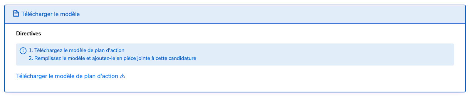 Note : Téléchargez et remplissez le modèle de plan d’action, puis ajoutez-le en pièce jointe à cette demande.