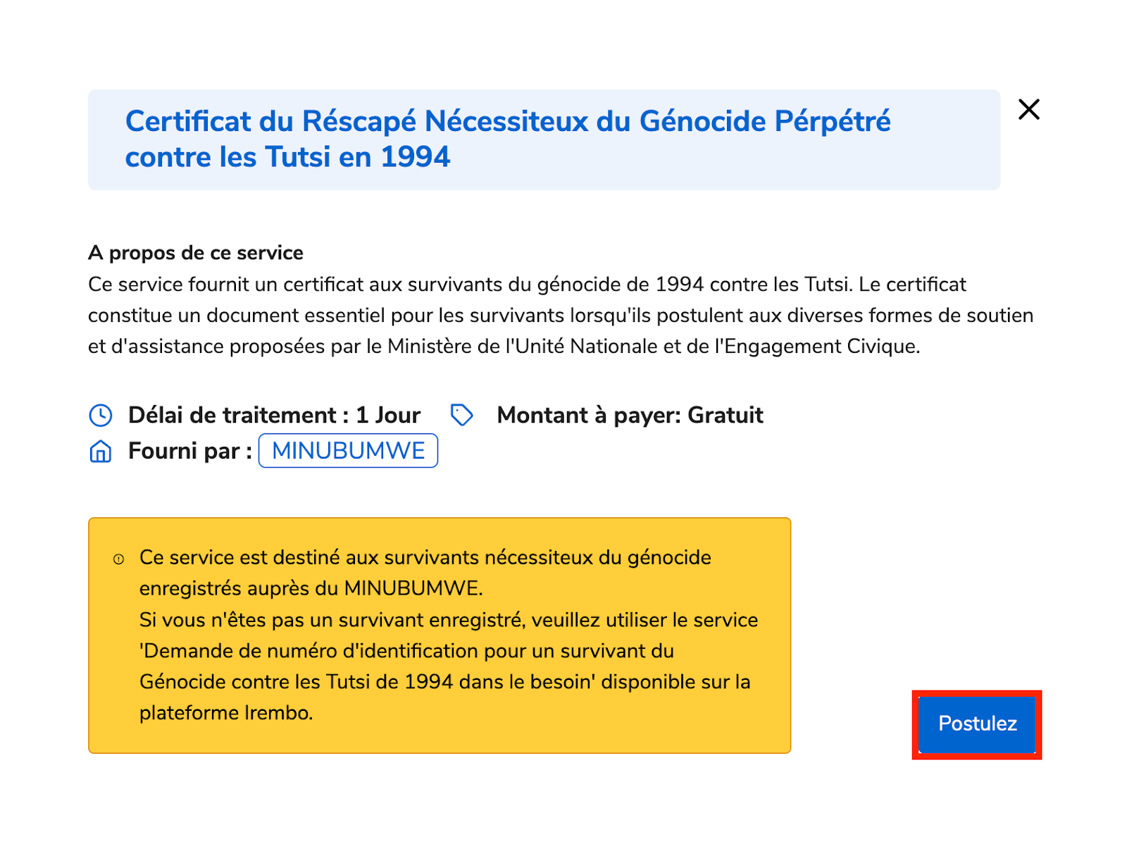 Suivez ces étapes simples pour demander un Certificat du Réscapé Nécessiteux du Génocide Pérpétré contre les Tutsi en 1994