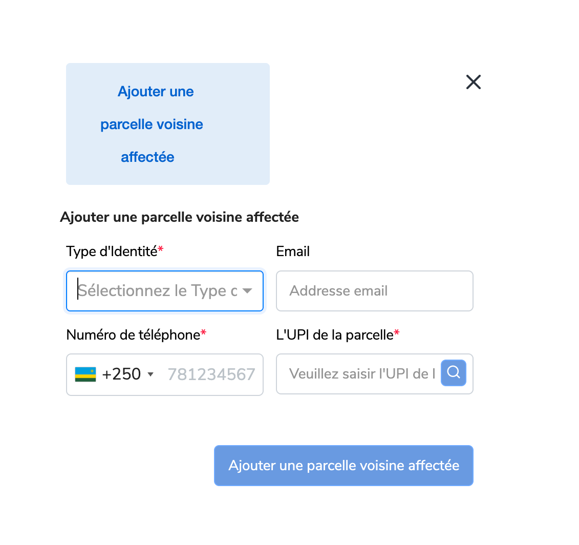 Note : Lorsque cela concerne d’autres personnes, le demandeur cliquez sur “Ajouter une parcelle voisine affectée”, et un nouvel onglet apparaîtra.