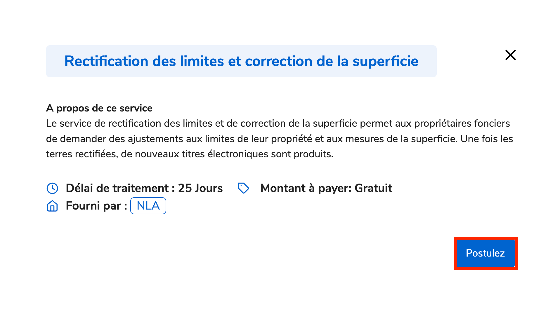 Suivez ces étapes simples pour faire une demande de Rectification des limites et correction de la superficie: