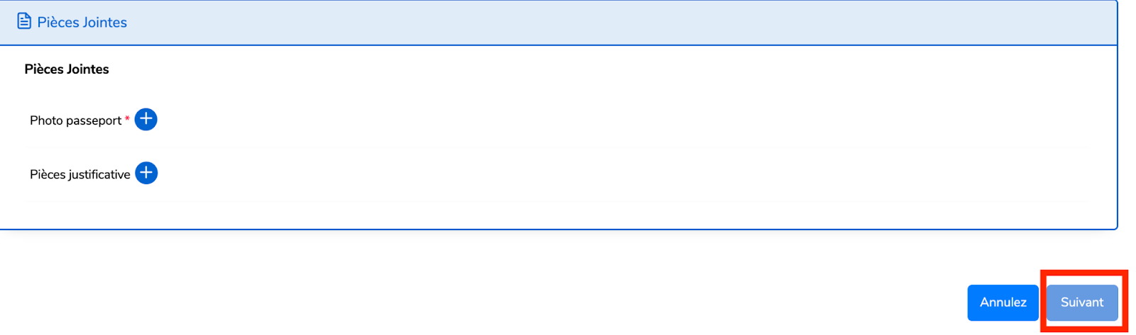 Joignez les pièces jointes requises dans la bonne taille et format.puis cliquez sur “Suivant”.