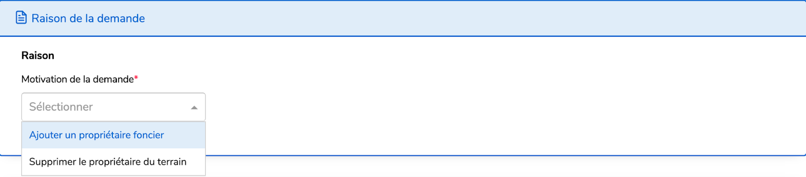 Sélectionnez si vous voulez ajouter ou supprimer le propriétaire foncier.