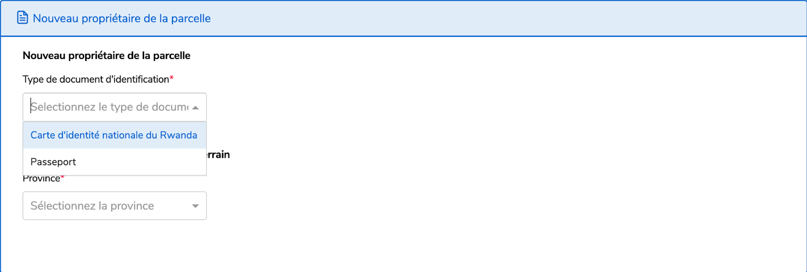 Lorsque vous sélectionnez “Ajouter le propriétaire foncier” ,veuillez renseigner ses information et son adresse.