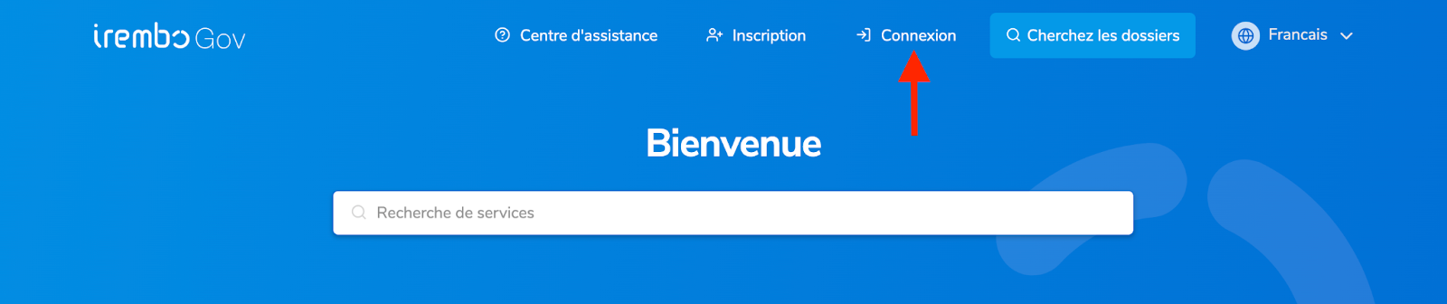 Rendez-vous sur www.irembo.gov.rw et cliquez sur “Connexion” pour vous connecter.