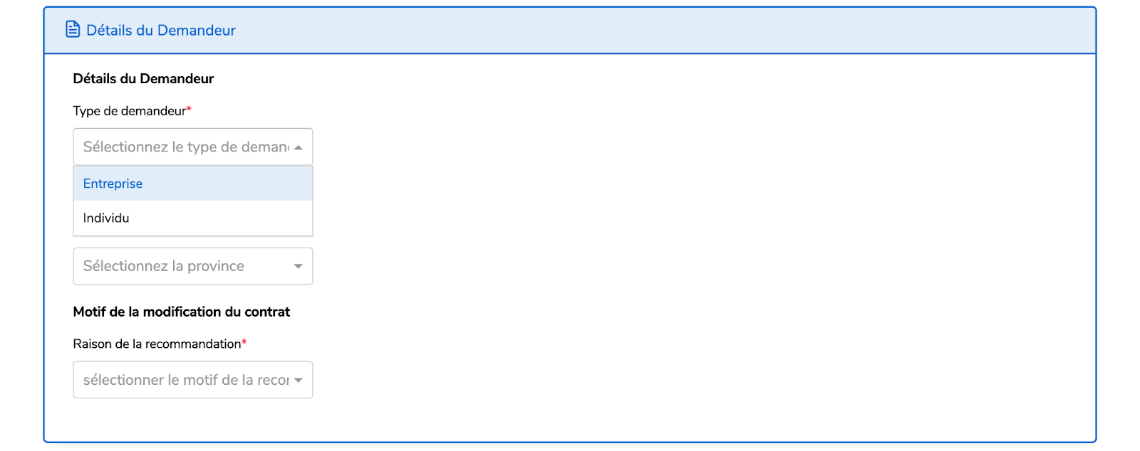 Le demandeur doit fournir un numéro de téléphone valide ou une adresse e-mail valide, ou les deux.