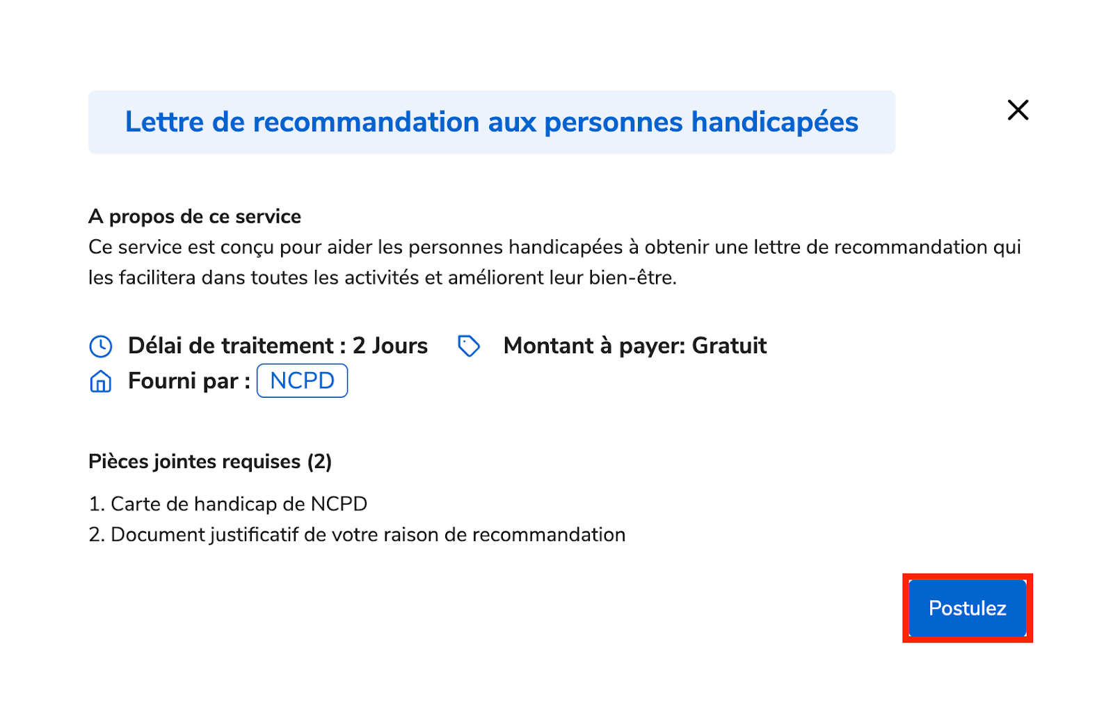 Suivez ces étapes simples pour demander la Lettre de recommandation aux personnes handicapées: