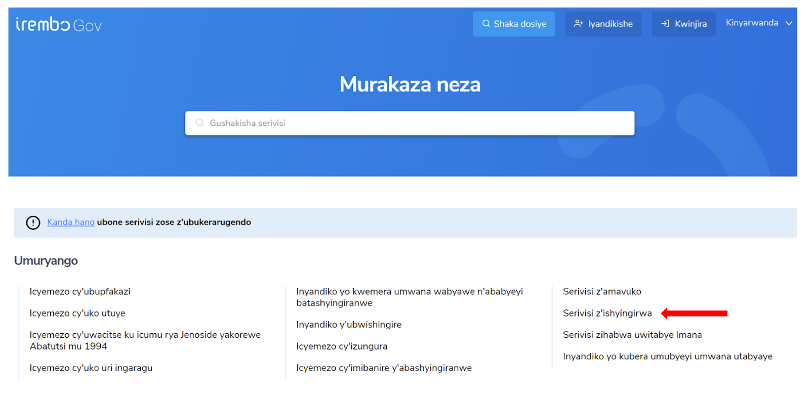 1. Gana www.irembo.gov.rw ukande kuri Kwinjira maze usabe iyi serivisi.