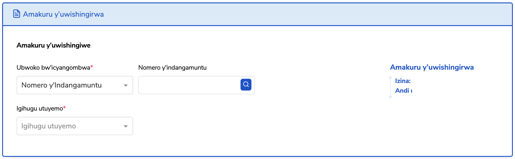 Umunyarwanda agomba kuba afite nomero y’indangamuntu mu gihe umunyamahanga agomba kuba afite nomero ya pasiporo n’umwirondoro wuzuye.