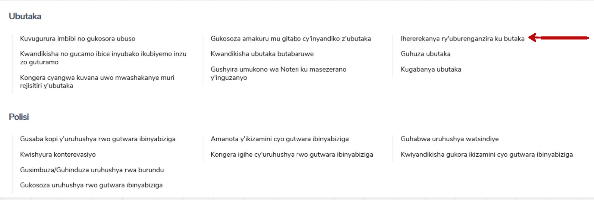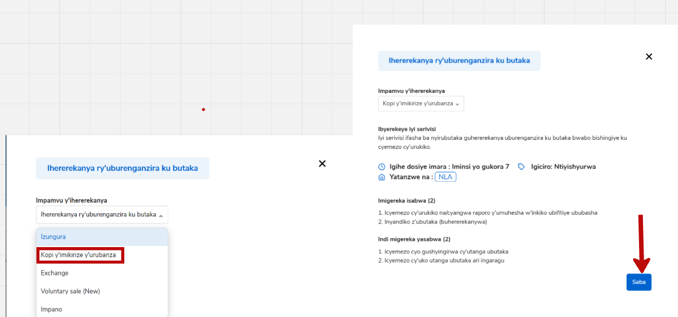 Ahanditse ubutaka, kanda kuri Ihererekanya ry’uburenganzira ku butaka.